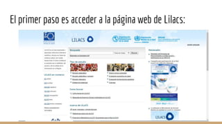 El documento describe el proceso para buscar y exportar artículos de la base de datos Lilacs a Mendeley, comenzando por acceder a la página de Lilacs y utilizar palabras clave específicas. Se detallan pasos para filtrar artículos relacionados con niños y adolescentes y exportar archivos en formato RIS. Finalmente, se indica cómo importar estos archivos a Mendeley y preparar una bibliografía en estilo Vancouver en un documento Word.
