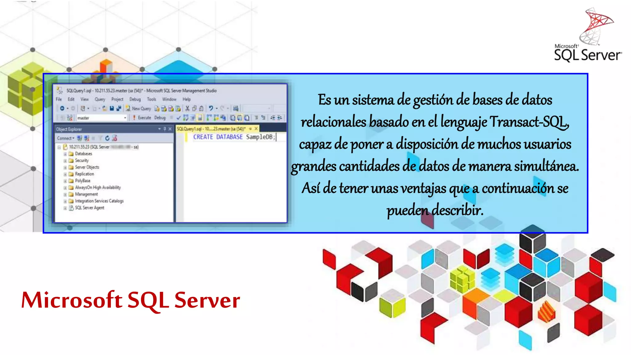Microsoft SQL Server es un sistema de gestión de bases de datos relacionales que utiliza Transact-SQL, ofreciendo soporte de transacciones, escalabilidad y seguridad. Posee un entorno gráfico de administración y permite operar en modo cliente-servidor. Sin embargo, su alto consumo de memoria RAM y su relación calidad-precio en comparación con Oracle pueden ser considerados desventajas.