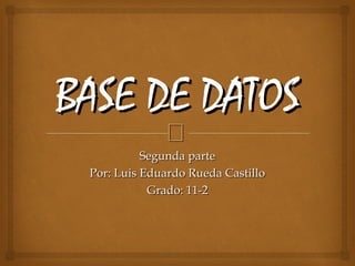 El documento describe los conceptos clave de las bases de datos, incluyendo el modelo de entidad-relación, los tipos de relaciones como uno a uno, uno a muchos y muchos a muchos, y el proceso de diseño de una base de datos que involucra determinar el propósito, las tablas, los campos, las relaciones y perfeccionar el diseño.