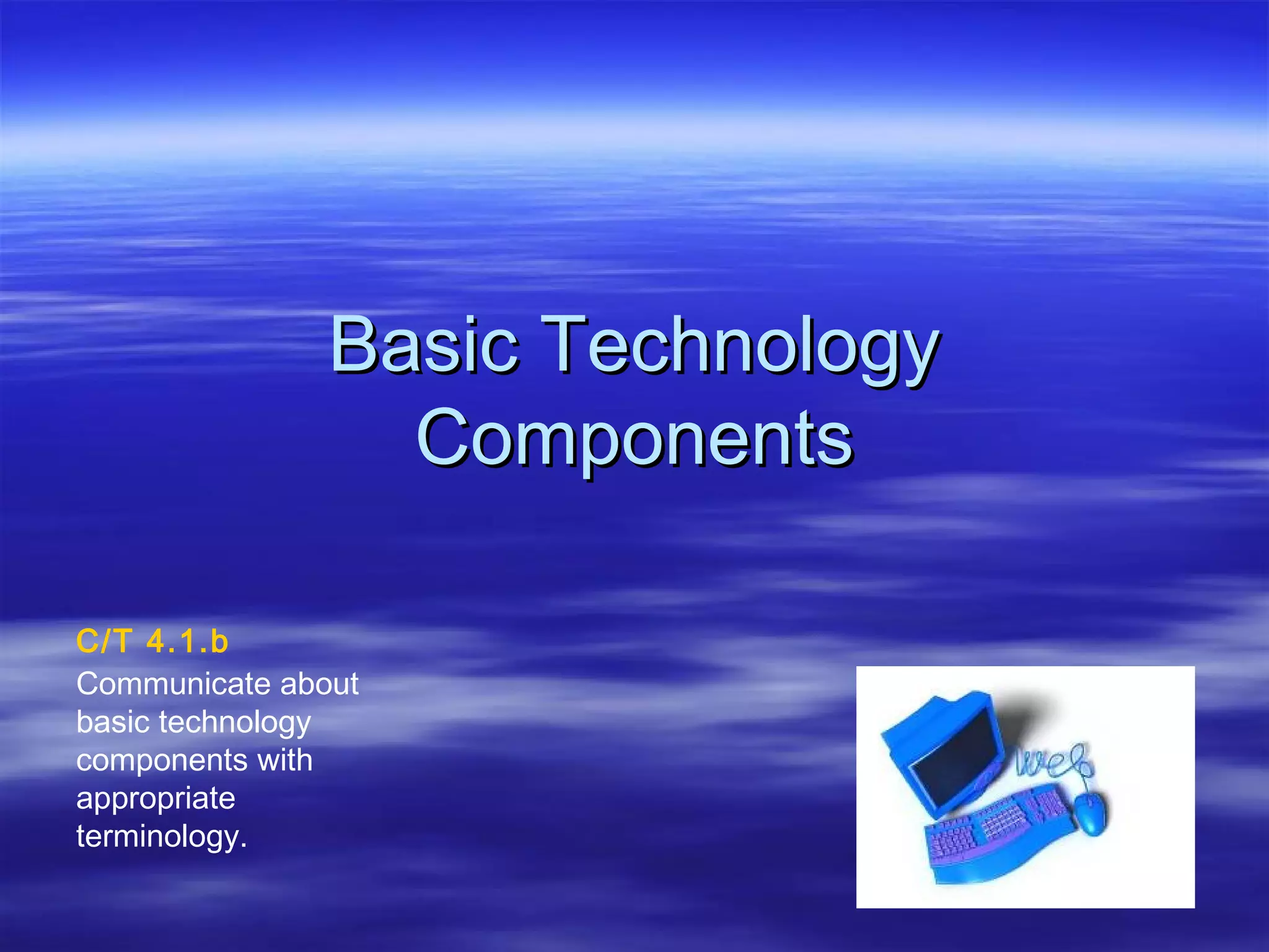 El documento presenta una lista de preguntas de selección múltiple sobre los componentes básicos de la tecnología, incluyendo opciones como monitor, teclado, CPU, impresora, ratón, unidad de CD-ROM, unidad de disquete, altavoces, escáner, cámara digital, reproductor MP3, micrófono y auriculares.