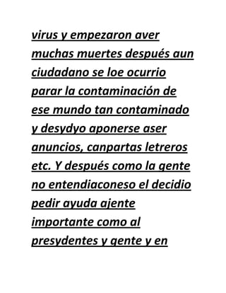 Un ciudadano decidió tomar acción para detener la contaminación creciente en el mundo luego de que pasaron los años y se acumularon desechos, causando enfermedades y muertes. Él comenzó una campaña de concientización a través de anuncios y letreros, y luego pidió ayuda a líderes gubernamentales para advertir a la gente. Con el tiempo, la gente comenzó a separar su basura en botes reciclados y a formar grupos para prevenir más contaminación, limpiando poco a poco cada país hasta que finalmente se descont