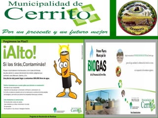 El documento describe la situación actual de la basura en San Carlos de Bariloche. Genera más de 100,000 kg de basura por día, y el actual vertedero está colapsado y causa contaminación. Se proponen varias soluciones como separación en origen, producción de compost y briquetas, y un nuevo plan de gestión de residuos con cuatro plantas. Sin embargo, aún queda trabajo por hacer para implementar soluciones sostenibles a largo plazo.