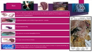 El bazo es un órgano vital en el cuerpo humano, de forma ovoide y tamaño similar a un puño, situado en la región superolateral del abdomen y cuya función principal es la producción de linfocitos y la destrucción de glóbulos rojos viejos. Además, juega un papel importante en el sistema inmunológico y puede verse afectado por diversas condiciones como esplenomegalia o hiperesplenismo. Su vascularización proviene de la arteria esplénica y su inervación está a cargo del plexo celíaco.