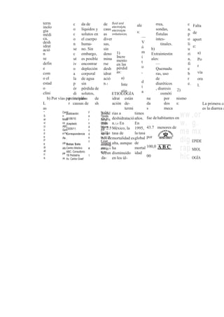 Este documento describe la deshidratación en niños. La deshidratación ocurre cuando se pierde agua y solutos del cuerpo, siendo la diarrea la causa más común en niños. La deshidratación puede ser leve, moderada o grave dependiendo de los signos clínicos. El tratamiento adecuado incluye rehidratación oral para deshidratación leve a moderada y rehidratación intravenosa para deshidratación grave, para prevenir complicaciones como la mortalidad en menores de cinco años.