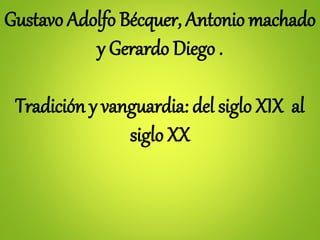 Este documento resume las características estilísticas de los poetas Gustavo Adolfo Bécquer, Antonio Machado y Gerardo Diego. Explora la construcción de significados profundos a través de imágenes poéticas directas, reflejas, dobles, triples y múltiples. También analiza los símbolos del árbol y el sol en la poesía y su evocación de conceptos como el centro del universo y la fuente de vida.