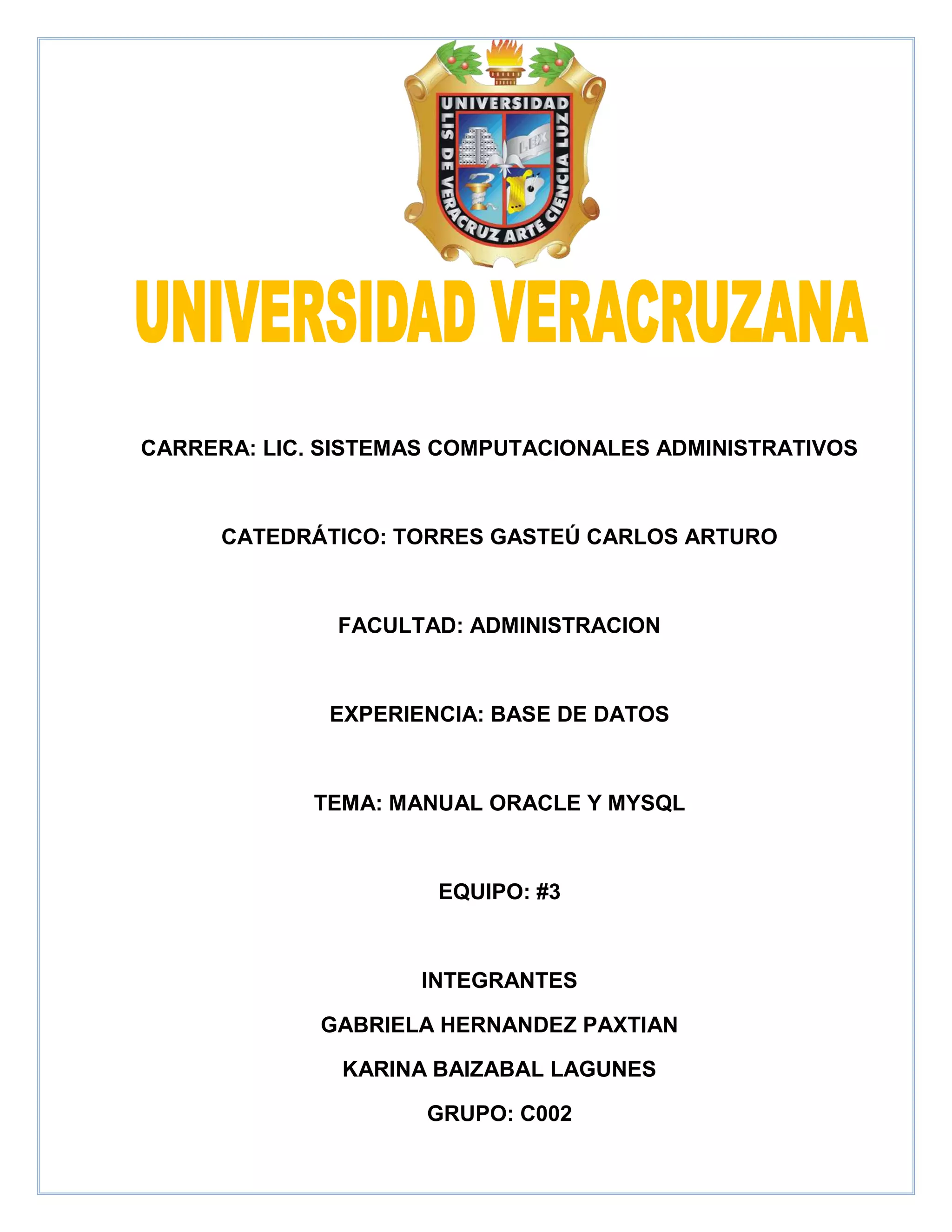 Este documento presenta una comparación entre las bases de datos MySQL y Oracle. Analiza varios puntos como soporte, rendimiento, funcionalidad, sistemas operativos compatibles, tipos de datos, almacenamiento, herramientas de gestión, características de seguridad y más. MySQL es de código abierto mientras que Oracle es propietaria. Ambas son populares aunque MySQL es más asequible y Oracle más robusta. El documento provee una tabla comparativa detallada para que los usuarios elijan la base de datos más adecuada para sus necesidades.