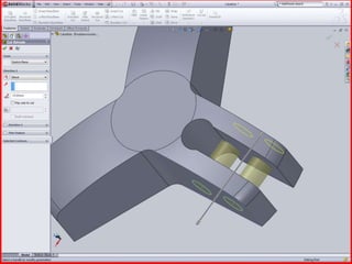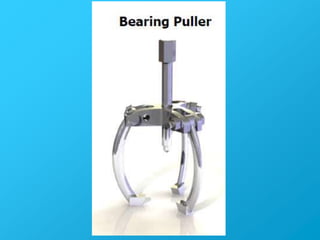 Este documento describe el ensamble de una herramienta para extraer cojinetes y la modelación de una pieza para este ensamble. Se especifican las dimensiones de la pieza, incluido un diámetro de 12.5, y se indica que la rosca puede no ser visible. También menciona una tarea para modelar la pieza y calcular un factor de seguridad.