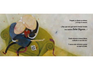 Este documento proporciona información sobre un nuevo libro infantil titulado "Bebé Bigotes" escrito por Patacrúa y Alessandra Cimatoribus e ilustrado por Oqo Ediciones. El libro de 36 páginas se publicó por primera vez en julio de 2006 en Pontevedra, España. Se vende por 10,10 euros sin IVA o 10,50 euros con IVA e incluye textos en gallego, castellano y catalán.