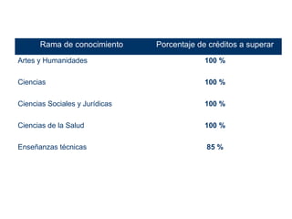 Este documento establece los requisitos académicos para obtener una beca del Ministerio de Educación en España. Requiere que los estudiantes de primer curso universitario tengan una nota de acceso de 6.5 puntos. Para cursos posteriores, los estudiantes deben haber aprobado el 100% de los créditos en artes, humanidades, ciencias y ciencias sociales, y el 85% en enseñanzas técnicas. También establece los requisitos para estudiantes de bachillerato, ciclos formativos y ense