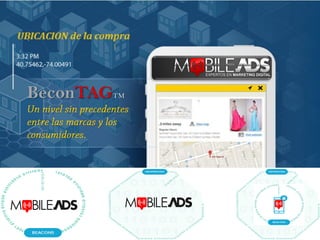 Este documento describe BeconTAG, una compañía que fabrica y desarrolla dispositivos beacon y software para publicidad basada en la ubicación. Explica que la industria de publicidad por proximidad está creciendo rápidamente y que BeconTAG está creando la mayor red de beacons en México para ofrecer anuncios personalizados a los usuarios móviles basados en su ubicación.