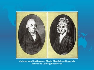 Ludwig van Beethoven (1770-1827) fue un compositor alemán que marcó la transición entre el Clasicismo y el Romanticismo. Nacido en Bonn, Alemania, Beethoven compuso obras en diversos géneros musicales que trascendieron su época, incluyendo nueve sinfonías innovadoras, 32 sonatas para piano y cuartetos de cuerda. Aunque comenzó su carrera siguiendo los modelos clásicos de Mozart y Haydn, sus obras posteriores incorporaron nuevas técnicas arm