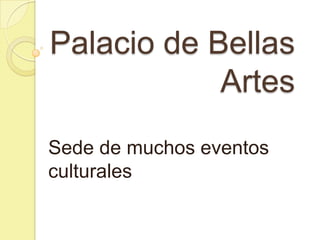 El Palacio de Bellas Artes en la Ciudad de México es la sede principal para eventos culturales en el país y ha estrenado numerosas óperas mundialmente. Algunas de las óperas estrenadas incluyen Tabaré en 1935, Tonatiu en 1940 y La mulata de Córdoba en 1948. El Palacio de Bellas Artes es considerado el teatro lírico más importante de México.