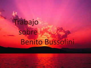 Benito Mussolini fue un dictador italiano que gobernó desde 1922 hasta 1943. Fundó el partido fascista y utilizó a los camisas negras para ganar poder. Aunque inicialmente apoyó a Montessori, luego quiso adoctrinar a los niños, por lo que ella se separó. Mussolini llegó al poder con un golpe de estado y estableció un régimen autoritario, aunque fue bueno en política exterior firmando acuerdos con otros países. Finalmente fue depuesto y ejecutado en 1945.