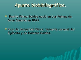 Benito Pérez Galdós nació en Las Palmas de Gran Canaria en 1843. Se trasladó a Madrid a los diecinueve años y nunca se casó, aunque tuvo una hija ilegítima. En 1873 publicó las dos primeras series de los Episodios Nacionales, su obra más famosa. A finales de los 1880 y principios de los 1890, Galdós experimentó nuevas formas de novelar en obras como Miau, La incógnita y Ángel Guerra. También adaptó varias de sus novelas para el teatro, logrando éxito entre el públic