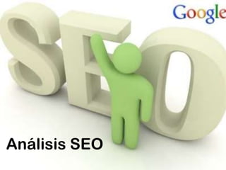 El documento proporciona información sobre el análisis SEO (Search Engine Optimization). Explica que un análisis SEO es fundamental para establecer la estructura de un sitio web y mejorar su posicionamiento orgánico. Detalla cinco puntos clave para el análisis SEO como las URLs, las etiquetas meta, las keywords, los enlaces y el código HTML. También menciona cuatro herramientas útiles para realizar análisis SEO como Popuri, Raven, WebsiteGrader y SEO Centro.