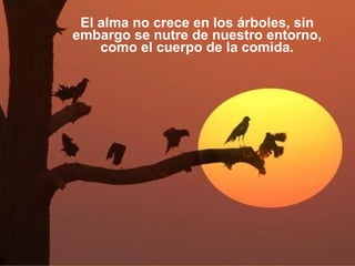 El documento habla sobre la importancia de alimentar el alma a través de la compasión, el apoyo y la aceptación de los demás. Besar el alma significa tener paciencia, comprender a los demás sin juzgarlos, brindar consuelo en momentos difíciles y pasar tiempo en silencio y compañía para fortalecer la esperanza.