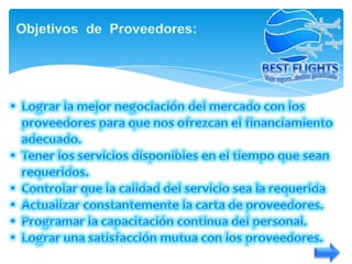Este documento presenta información sobre una nueva empresa de viajes. Detalla los objetivos, valores, estrategias, políticas, visión, misión y organigrama de la empresa. También incluye una tabla con los socios y las cantidades aportadas por cada uno, así como calendarios de actividades para los primeros meses de operación de la empresa.