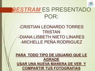 Este documento presenta Bestram, una nueva aplicación para organizar y ver fotografías en dispositivos Android de manera sencilla y minimalista. Incluye una introducción sobre Bestram, sus objetivos, marcos de referencia, metodología y cronograma de actividades. Se realizó una encuesta y se muestra el código de la aplicación. El resumen concluye que Bestram busca ser una innovadora herramienta para ver fotografías de manera personalizada.