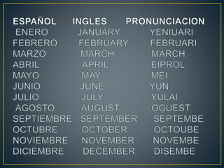 Este documento presenta una tabla con los números del 1 al 50 en inglés y su pronunciación. Cada línea incluye el número escrito y su pronunciación en inglés. El documento también contiene una breve explicación sobre el uso de los auxiliares "Will" y "Won't" para expresar futuro en inglés.