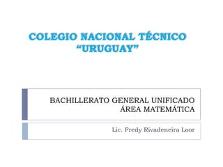 Este documento presenta los lineamientos curriculares para el primer año de bachillerato en el área de matemáticas en el Colegio Nacional Técnico "Uruguay". Se describen los objetivos educativos, conocimientos esenciales, destrezas con criterios de desempeño e indicadores de evaluación. El enfoque es desarrollar habilidades matemáticas para resolver problemas mediante conceptos como funciones lineales y cuadráticas.