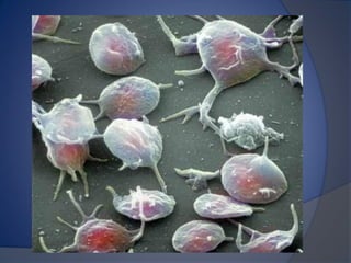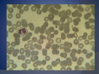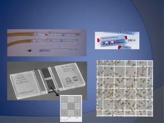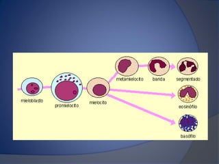 Este documento describe la biometría hemática, que consiste en un análisis cuantitativo y cualitativo de las células de la sangre. Explica que mide la fórmula roja, blanca y plaquetas, y describe los tipos de células como eritrocitos, leucocitos y plaquetas, así como sus funciones y causas de variaciones. También explica el principio de conteo celular por impedancia eléctrica y proporciona valores de referencia para la interpretación de los resultados.