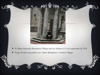 Mario Sebastián Benalcázar Villegas nació en Ambato, Ecuador el 15 de septiembre de 1995. Asistió a la escuela primaria Juan León Mera y secundaria, donde desarrolló intereses en la música, deportes y artes. Actualmente estudia ingeniería electrónica en la Universidad Técnica de Ambato y espera formar una familia en el futuro.