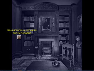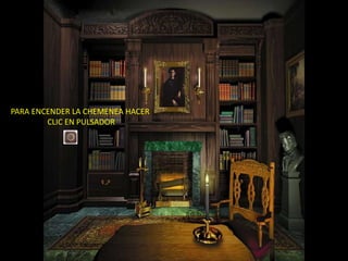 El documento proporciona instrucciones para encender la luz y la chimenea mediante pulsadores, y lista autores de poemas con enlaces a biografías breves de algunos de ellos, como García Lorca, Rosalía de Castro y Antonio Machado. También incluye dos poemas de García Lorca y uno de Rosalía de Castro.
