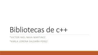 Las bibliotecas en C++ son archivos que contienen funcionalidades ya construidas que pueden agregarse a un programa para ahorrar tiempo y esfuerzo. Algunas bibliotecas estándar incluyen iostream, string, vector y math. Las bibliotecas se declaran usando #include y el espacio de nombres std, y proveen funciones útiles como entrada/salida, manejo de cadenas y operaciones matemáticas.