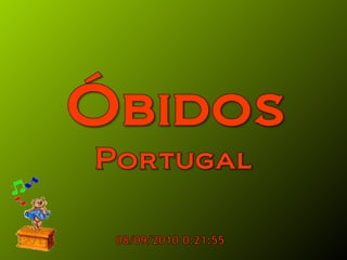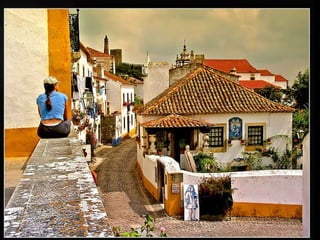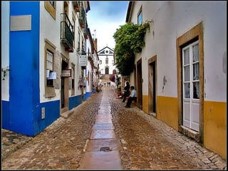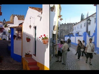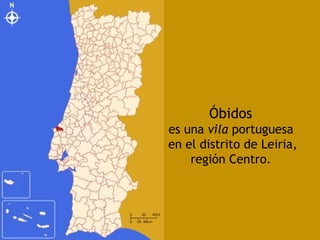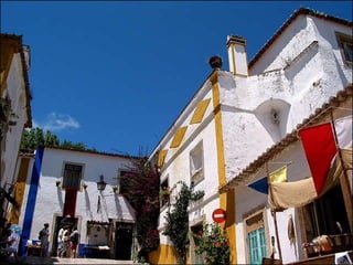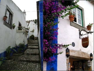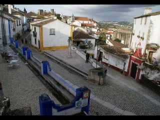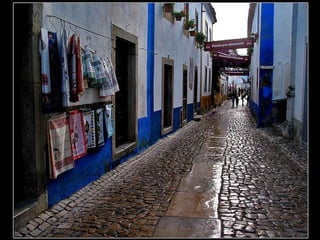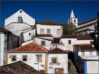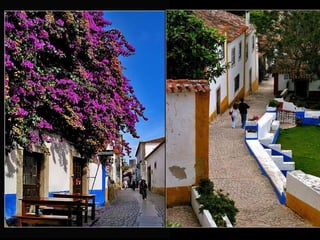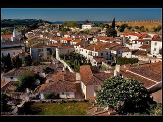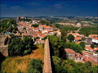 Óbidos es una pequeña ciudad amurallada portuguesa situada a 20 km al norte de Lisboa. Rodeada de murallas medievales, conserva numerosos edificios históricos como iglesias, palacios y casas blancas de calles empedradas que datan de la época en que fue ocupada por celtas, fenicios, árabes y romanos. Dentro de las murallas se encuentra la iglesia de Santa María, originalmente un templo visigodo y mezquita árabe, así como el castillo árabe con