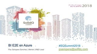 Este documento presenta opciones de arquitectura para implementar soluciones de Business Intelligence (BI) de extremo a extremo en Azure. Describe los diferentes servicios de Azure para almacenamiento, eventos y streaming, y análisis de datos. También discute arquitecturas clásicas, en la nube y híbridas, con ejemplos de orígenes de datos para cada una. Finalmente, muestra demos de implementaciones de BI en Azure usando Azure Data Factory, SQL Server Integration Services y Azure Analysis Services.