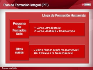 Este documento presenta la información sobre el Programa de Formación Sello de la Universidad Popular Autónoma del Estado de Puebla (UPAEP). El programa consiste en cursos introductorios y de identidad y compromiso para promover un mayor sentido de pertenencia a la comunidad de la UPAEP y compromiso con su misión. El curso introductorio presentado aquí cubre los principios generales de la identidad y filosofía institucional de la UPAEP.