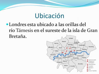 Londres se encuentra ubicado en el sureste de Gran Bretaña a orillas del río Támesis, tiene una población de aproximadamente 7,5 millones de habitantes y utiliza la libra esterlina como moneda oficial. Entre los principales sitios turísticos se encuentran la Torre de Londres, el Big Ben y la Abadía de Westminster.