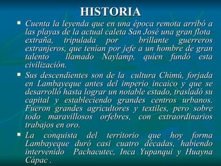 El documento proporciona información sobre el departamento de Lambayeque en Perú. Lambayeque tiene una rica historia y cultura, con atractivos turísticos como las tumbas reales de Sipán y bosques secos. La capital es Chiclayo y las principales actividades económicas son la agricultura, la pesca y la ganadería. La gastronomía de Lambayeque incluye platos como el cebiche y el seco de cabrito.