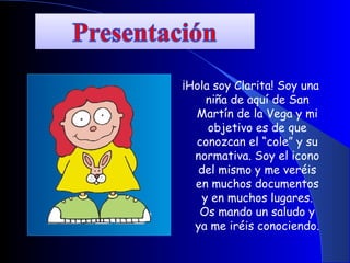 Este documento proporciona información sobre el funcionamiento y características del Colegio Público Clara Campoamor en San Martín de la Vega. Resume los detalles sobre las instalaciones, horarios, personal, asignaturas, actividades y servicios disponibles en el centro.