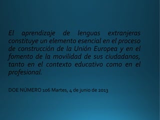 Este documento describe la sección bilingüe del IES Turgalium. El objetivo es que los estudiantes adquieran un nivel intermedio de inglés y aprendan contenidos no lingüísticos en inglés. Las materias que se imparten en inglés son matemáticas, ciencias naturales, ciencias sociales e historia. Los estudiantes reciben una clase extra de inglés a la semana y el 30% de las clases son en inglés.