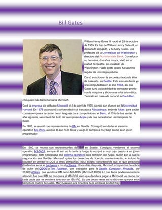 Bill Gates nació en 1955 en Seattle y creció en una familia acomodada. Mostró un temprano interés por la informática y cofundó Microsoft en 1975 mientras aún era estudiante en la Universidad de Harvard. En 1980, consiguió venderle a IBM el sistema operativo MS-DOS a pesar de que aún no lo poseía, lo que llevó al éxito de Microsoft.