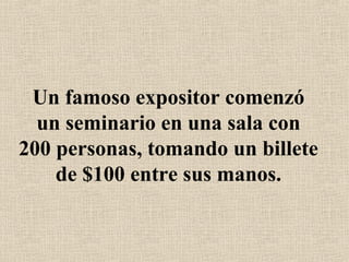 Un expositor ilustra el valor inherente de las personas utilizando un billete de $100 arrugado y sucio, enfatizando que, a pesar de las dificultades, nuestra valía nunca disminuye. A través de una serie de preguntas, invita a reflexionar sobre quiénes realmente importan en nuestras vidas, destacando que las conexiones personales son más significativas que los logros o reconocimientos externos. El mensaje central es que, aunque no seamos famosos, todos tenemos importancia en la vida de los demás.