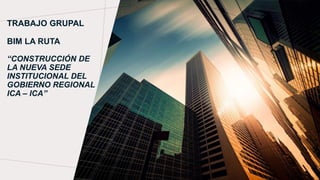 Este documento presenta la estructura organizacional y roles propuestos para la implementación de BIM en el Gobierno Regional de Ica para el proyecto de construcción de su nueva sede institucional. Se detalla la articulación de roles entre la parte designada principal (Gobierno Regional) y el consultor/consorcio, asignando roles como Líder BIM, Gestor BIM y Supervisor BIM. También se sugiere una estrategia de implementación progresiva de BIM en fases y la contratación de personal clave para apoyar el proceso.