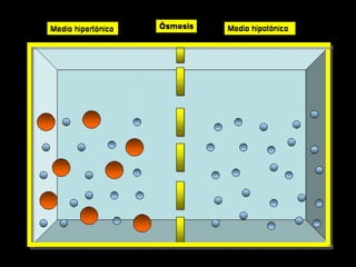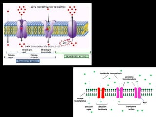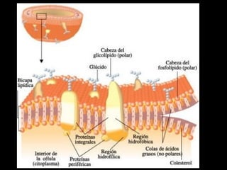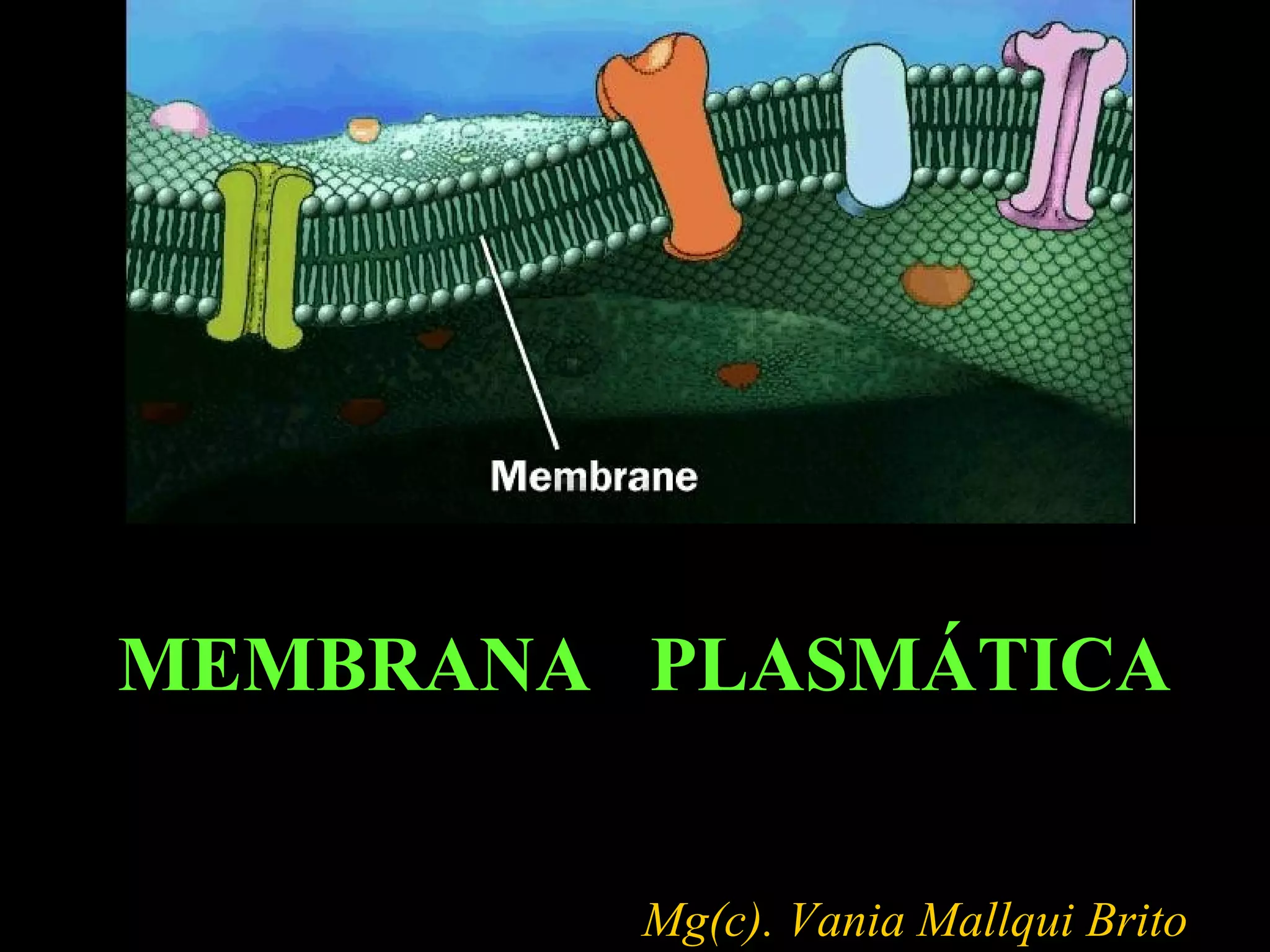 La membrana plasmática cumple varias funciones importantes como dividir la célula en compartimientos, ser sitio de actividad bioquímica, actuar como barrera selectiva de permeabilidad y transporte de solutos. Está compuesta principalmente de proteínas y lípidos que forman una bicapa lipídica. Las proteínas cumplen funciones como canales, transporte, receptores y enzimas. Los lípidos principales son fosfolípidos, esfingolípidos y colesterol. El transporte a través de la membrana inclu