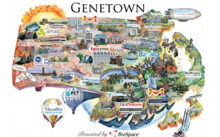 El documento describe la biotecnología y los bioclusters. Explica que los bioclusters son concentraciones geográficas de jugadores que compiten y colaboran en una industria o sector. Los bioclusters varían en estructura, evolución y metas, e involucran interacciones entre organizaciones para investigación, innovación y crecimiento económico. Las fuerzas que impulsan los bioclusters incluyen entidades científicas, industriales, financieras y de soporte.