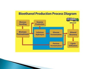 El documento habla sobre los biocombustibles como una fuente de energía renovable importante. Explica que los biocombustibles se originan a partir de restos orgánicos y que existen varios tipos como el biodiesel, el bioetanol y el biogás, los cuales se producen a través de procesos químicos utilizando materias primas como aceites vegetales, azúcares y desechos orgánicos. También analiza los impactos ambientales y económicos de los combustibles fósiles en comparación con los biocombustibles.