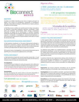 El documento describe unos cursos y talleres organizados por la Red Bioconnect para fomentar la generación de proyectos comerciales en ciencias de la vida. Los talleres enseñan competencias clave para identificar áreas de negocio entre investigadores y empresas, y reunir factores necesarios para exitosas negociaciones que conviertan conocimiento científico en productos que mejoren la calidad de vida de usuarios. Los talleres están dirigidos a empresarios, investigadores y consultores interesados en innovación e inversiones en el sector de ciencias de la vida.