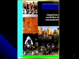 El documento proporciona información sobre la bioenergética del ejercicio. Explica que la energía viene de los alimentos y se almacena en el cuerpo en forma de ATP. Luego describe los tres sistemas para generar ATP - el sistema ATP-CP, el sistema glucolítico y el sistema oxidativo. Finalmente, explica que el ATP se produce a través de reacciones acopladas que implican la degradación completa o incompleta de nutrientes como carbohidratos y grasas.