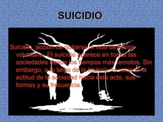 Este documento resume diferentes temas relacionados con la ética médica como el suicidio, suicidio asistido, eutanasia, aborto y casos relevantes. Explica los tipos de suicidio, suicidio asistido, eutanasia activa y pasiva, eutanasia voluntaria e involuntaria, y tipos de aborto. También analiza el primer caso histórico de eutanasia relacionado con la ética médica sobre Karen Quinlan y las implicaciones de la práctica médica sobre estos temas.