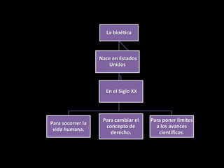 El documento resume los principales conceptos de la bioética. Explica que la bioética estudia la conducta humana en relación a las ciencias de la vida y la salud. Señala que existen dos conceptos en conflicto sobre la vida humana - el tradicional europeo que dice que la dignidad es intrínseca al ser humano, y el posmoderno débil que dice que depende de las capacidades. Finalmente, concluye que para la bioética, el hombre posee dignidad por su identidad personal intrínseca y que su comportamiento debe armonizar ciencia y