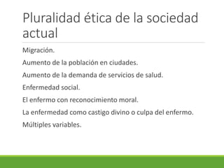 El documento aborda la compleja relación entre bioética y VIH/SIDA en un contexto social diverso, señalando las implicaciones éticas y los derechos de los pacientes, quienes deben ser tratados con dignidad y sin discriminación. Se discuten las responsabilidades tanto de los médicos como de los pacientes, así como la necesidad de revisar la ética médica tradicional ante la realidad de la enfermedad. Además, se resalta la importancia de campañas de educación y la participación de pacientes en la promoción de la salud y la investigación, subrayando la responsabilidad compartida de la sociedad y el estado en el tratamiento de personas con VIH/SIDA.