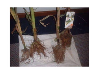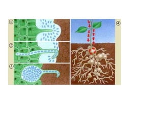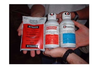 El documento describe los biofertilizantes y sus tipos y usos en la agricultura. Los biofertilizantes son insumos formulados con microorganismos que proveen o mejoran la disponibilidad de nutrientes para los cultivos. Incluyen fijadores de nitrógeno, solubilizadores de fósforo, promotores de crecimiento y micorrizas. Su uso permite bajar costos, proteger el medio ambiente y mantener la fertilidad del suelo.