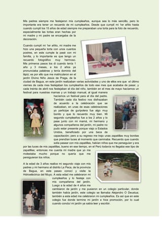 La autora nació en Bagua, Amazonas en 1992. Pasó su niñez en Bagua, donde asistió al jardín y primaria. Celebró sus cumpleaños con fiestas familiares y viajó con su familia a varias ciudades del Perú. Cursó la secundaria en Bagua, donde participó en actividades escolares y tuvo buenas amistades.