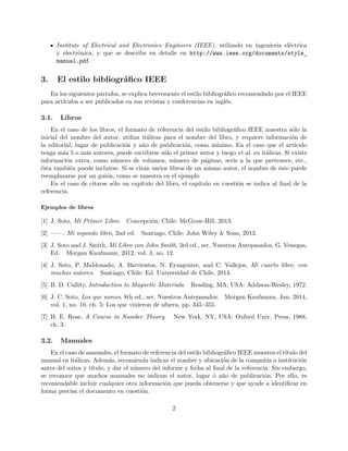 Este documento proporciona instrucciones sobre cómo escribir una bibliografía usando el formato IEEE, incluyendo ejemplos de cómo referenciar libros, manuales, informes técnicos, estándares, patentes, tesis, artículos de revistas y conferencias. Explica los elementos clave que debe incluir cada tipo de referencia bibliográfica de acuerdo con el formato IEEE.