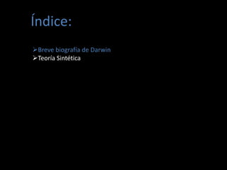 La teoría sintética de la evolución combina la genética mendeliana, la teoría cromosómica de la herencia, y la genética de poblaciones para explicar cómo la selección natural, las mutaciones genéticas, y el aislamiento geográfico causan la evolución a través del tiempo. Charles Darwin propuso originalmente la teoría de la evolución por selección natural después de observar la diversidad de la vida durante su viaje de cinco años alrededor del mundo.